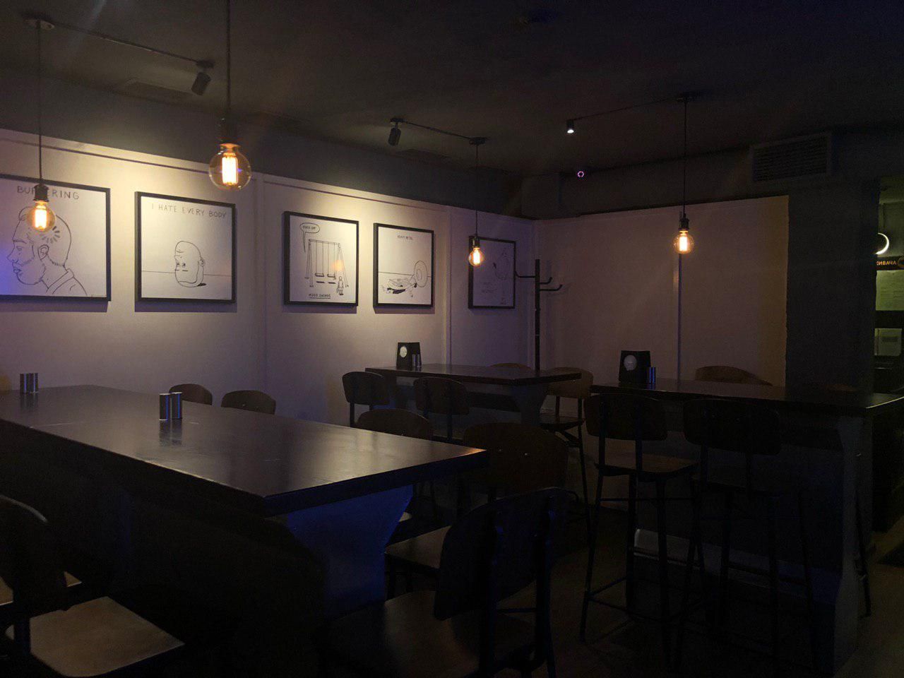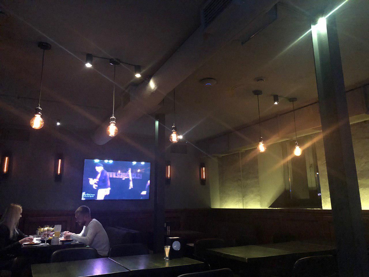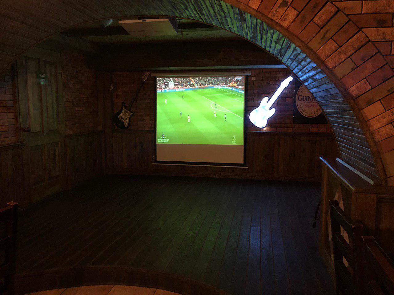 По залах розвішані телевізори, а на сцені встановлений великий проектор, тож в пабі можна подивитися трансляцію футбольного матчу або послухати виступ столичних груп кожної п’ятниці та суботи.