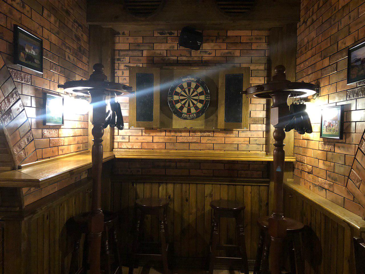 До кожної тематичної вечірки зал прикрашають відповідно. Приміщення маленьке та тісне, але атмосферне. Приглушене світло з різнокольоровими вогниками, дерев’яні столи та стільці, невелика барна стійка. У пабі транслюють топові футбольні матчі.