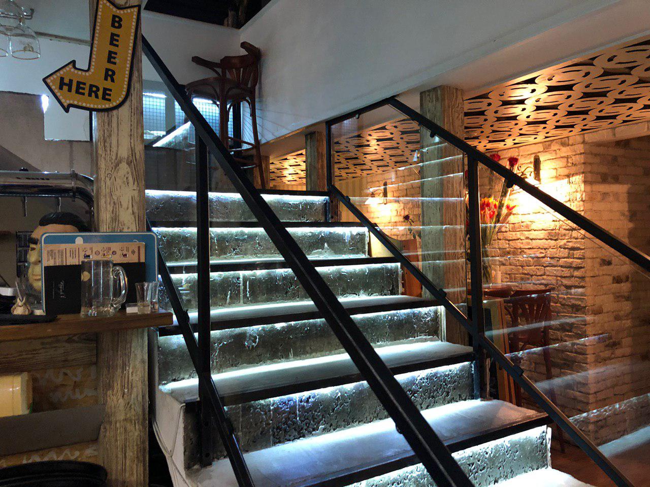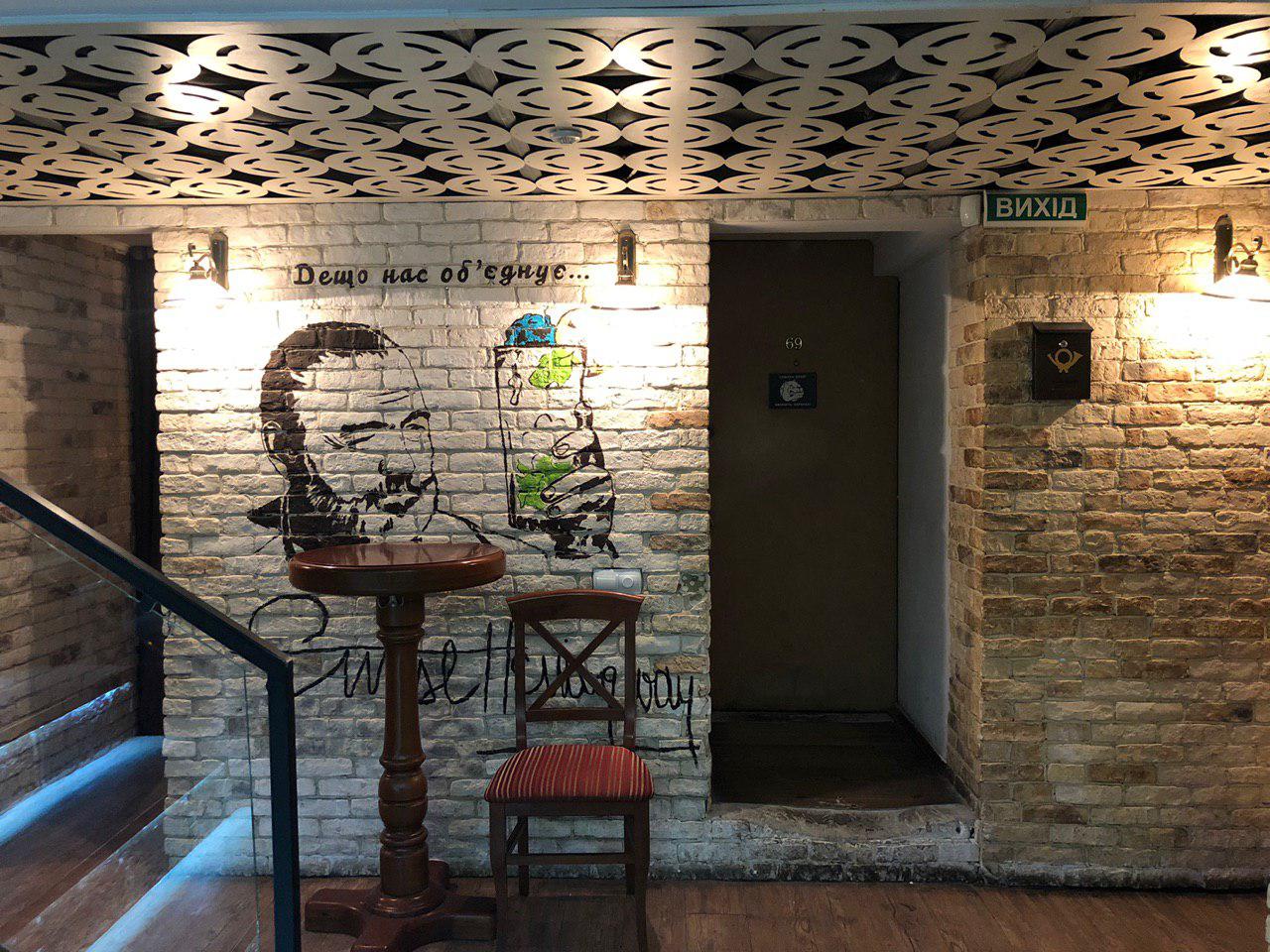 Між залами у підвалі розміщена барна стійка, на жаль, я потрапила в день її перевстановлення, але бармен пообіцяв, що буде гарно.