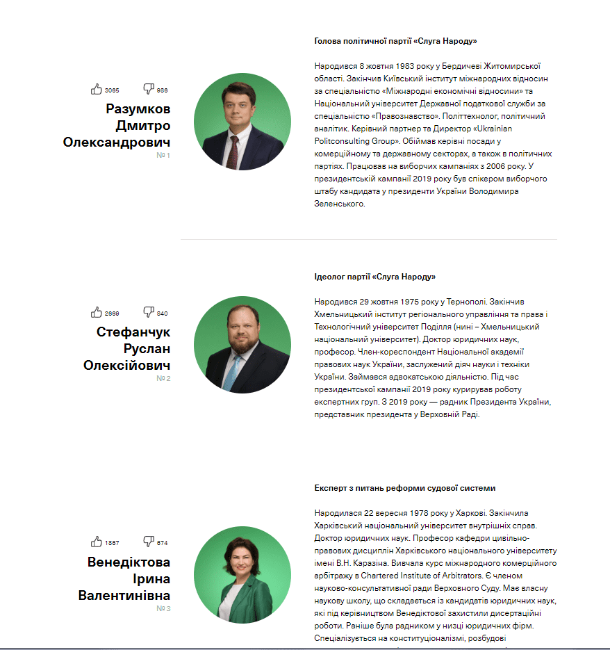 Партія Слуга народу запустила на сайті політсили процедуру постпраймерізу. Тепер кожен може проголосувати за кандидата на вибори у Раду – поставити лайк або діслайк. Для цього необхідно авторизуватися через соціальну мережу Facebook або електронну пошту.