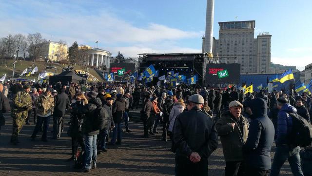 На Майдані розгорнули сцену, чергують правоохоронці. У центрі зібралися не лише кияни, але й люди з регіонів.