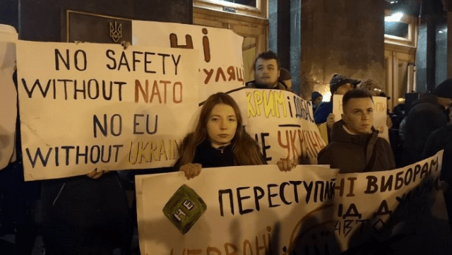 9 грудня біля Офісу президента триває акція Варта на Банковій, учасники якої вимагають не допустити здачі національних інтересів України під час зустрічі лідерів країн нормандської четвірки.