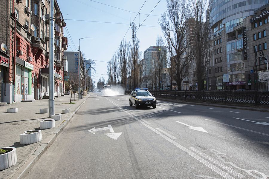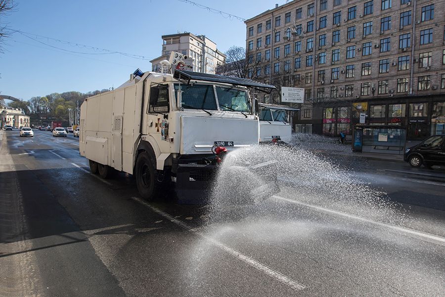 – Проведення дезінфекції вулиць є ефективним методом у боротьбі з вірусами. Ухвалили рішення про залучення спецавтомобілів для дезінфекції дорожнього покриття центральних вулиць міста Києва. Працюють спеціалісти підрозділу радіаційного, хімічного та біологічного захисту НГУ, – каже підполковник Андрій Борових.