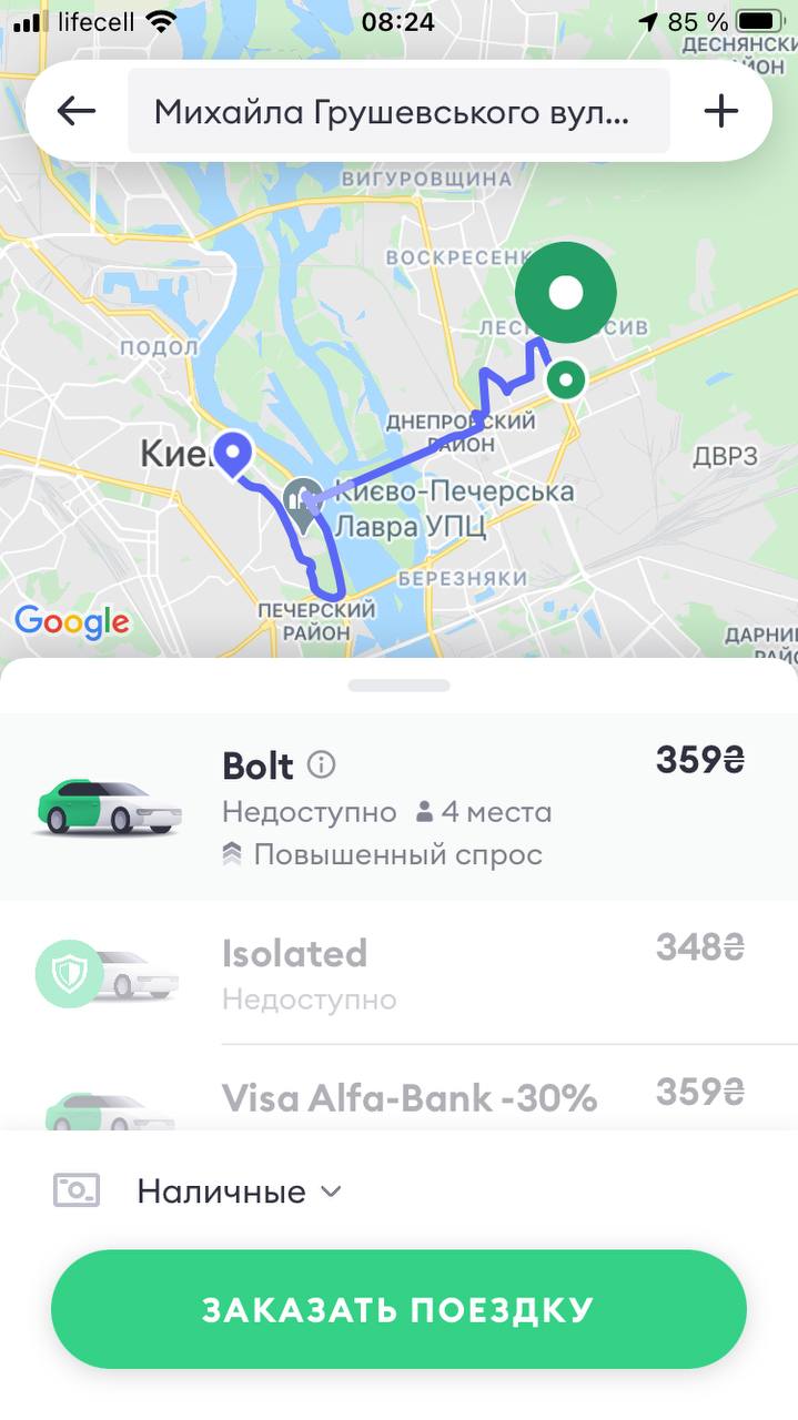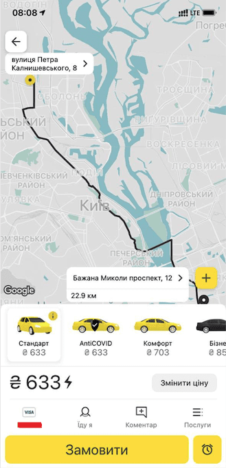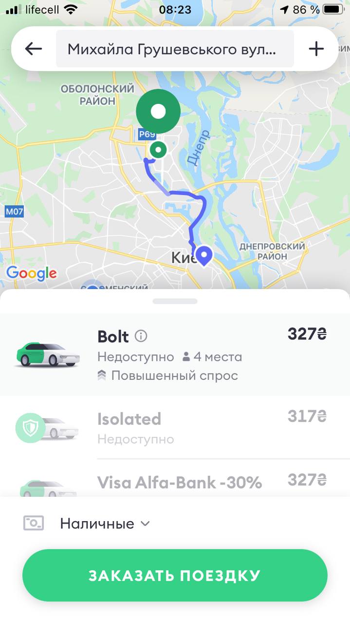 А ось на далекі відстані містом сьогодні краще не їздити, бо цінники, наприклад, з Оболоні у бік Позняків можуть доходити і до 630 грн.