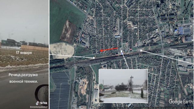 Після того, як до Гомеля прибуло кілька транспортно-зарядних для реактивної установки БМ-27, пускові установки БМ-27 з’явилися на залізничному вокзалі в Речиці. Аналіз відеозапису з відкритих джерел показав, що дві групи залізничних вагонів припарковані окремими шляхами для розвантаження вантажів по обидва боки від станції. На кадрах видно реактивні установки БМ-27 та супутнє обладнання.