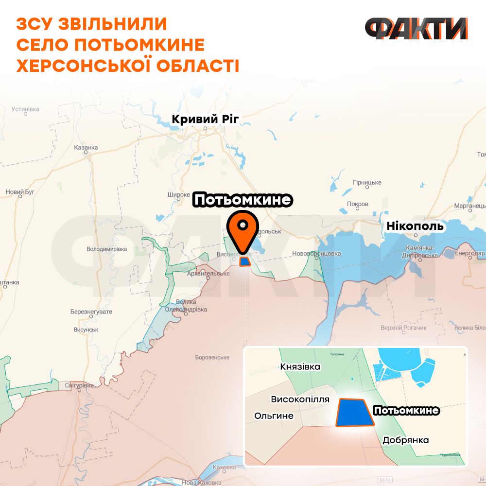 Збройні Сили України повідомили, що військовослужбовцям 60-ї окремої піхотної бригади вдалося провести успішний наступ у районі села Потьомкине на Херсонщині та звільнити його від окупації.