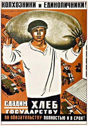 У 1930 році почав діяти Закон про хлібозаготівлі, згідно з яким усі колгоспи (колективні господарства) мусили здавати державі від чверті до третини усього зібраного збіжжя.