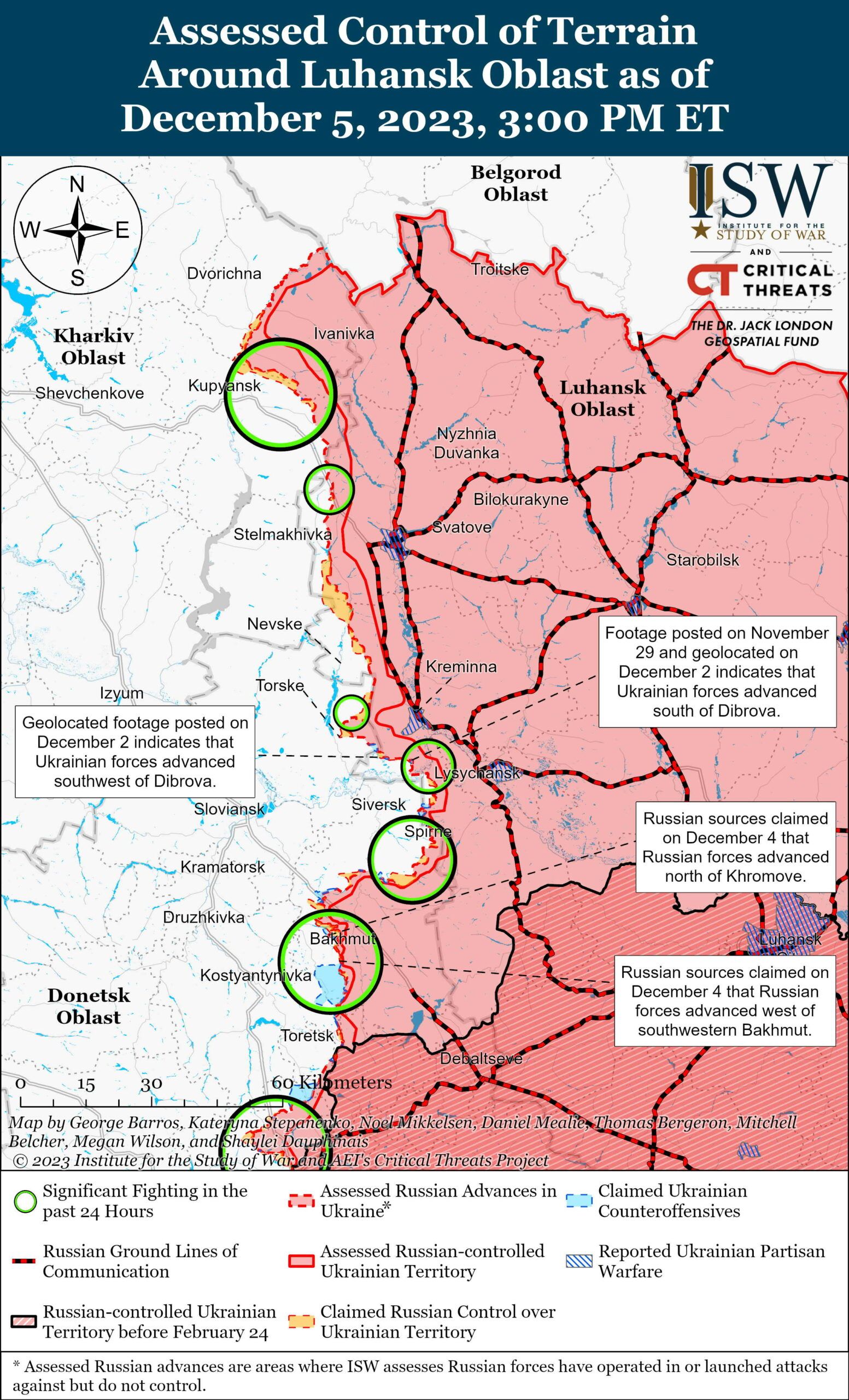 На Бахмутському напрямку наші воїни відбили 10 атак ворога в районах Богданівки, Кліщіївки та Андріївки Донецької області. Сили оборони України продовжують штурмові дії південніше Бахмута Донецької області, завдають ворогу втрат у живій силі та техніці, закріплюються на досягнутих рубежах.