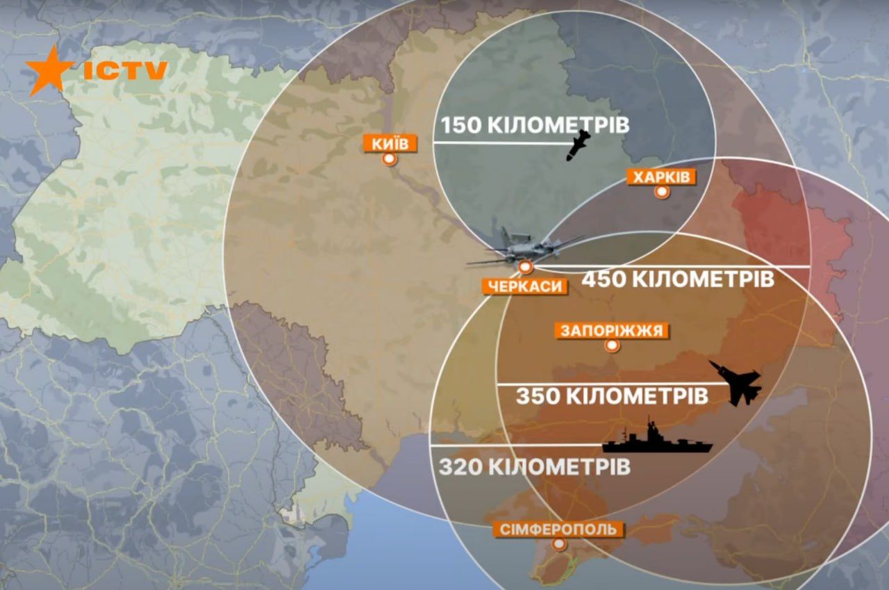 Цього достатньо, щоб, перебуваючи в районі Черкас, бачити всю лінію бойового зіткнення і майже всю тимчасово окуповану територію, включно з частиною Криму.