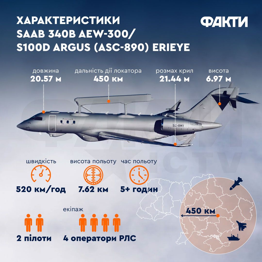 Ситуацію на фронті можуть змінити два літаки далекого радіолокаційного виявлення ASC 890 (відомі як Saab 340 AEW&C та S-100B Argus), які в рамках нового пакету допомоги Україні передасть Швеція.