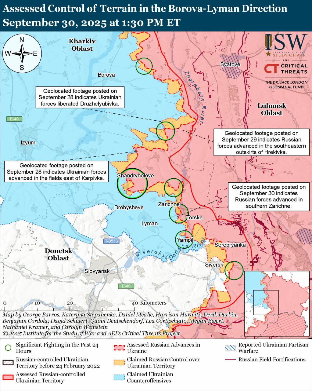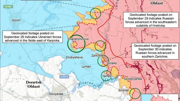 На Лиманському напрямку ворог атакував 15 разів. Намагався вклинитися в нашу оборону поблизу населених пунктів Шандриголове, Новомихайлівка, Греківка, Колодязі, Ямполівка та у бік Дробишевого.