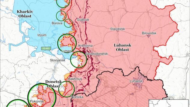 На Лиманському напрямку ворог атакував дев’ять разів біля Новомихайлівки, Дробишевого, Мирного, Зеленого Гаю та Шандриголового.