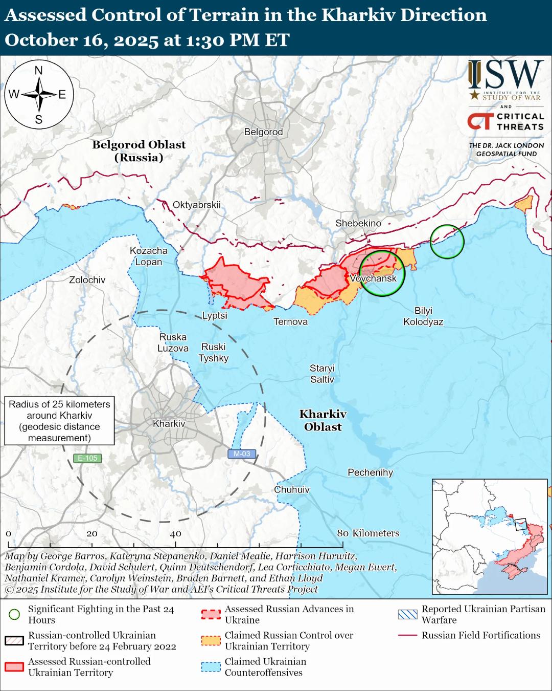 На Південно-Слобожанському напрямку вчора відбулося 15 бойових зіткнень поблизу Вовчанська, Вовчанських Хуторів, Кам’янки та в напрямку Колодязного, Бологівки, Кутьківки.