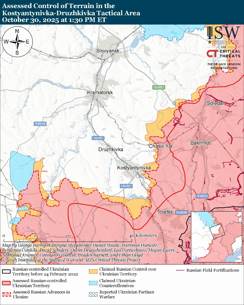 На Костянтинівському напрямку ворог здійснив 15 атак у районах Щербинівки, Петрівки, Яблунівки та Русиного Яру.