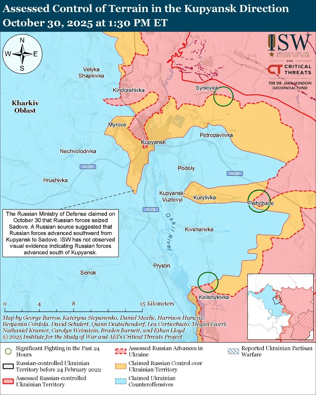На Куп’янському напрямку зафіксовано 13 атак загарбників у районах Куп’янська, Степової Новоселівки та у бік Піщаного й Петропавлівки.