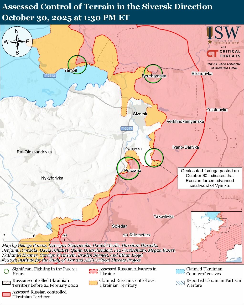 На Слов’янському напрямку наші воїни зупинили десять атак противника у районах Ямполя, Серебрянки, Виїмки, Переїзного та у бік Званівки.