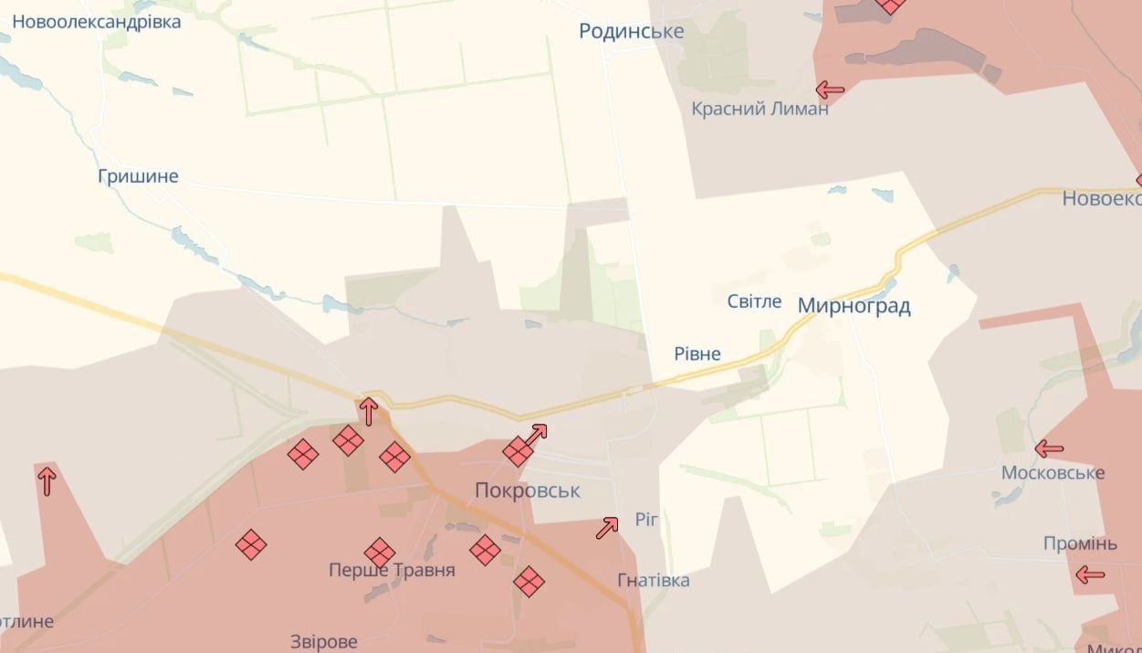 За інформацією військових, російські війська планують оточити Мирноград, просуваючись у напрямку населених пунктів Рівне та Світле.