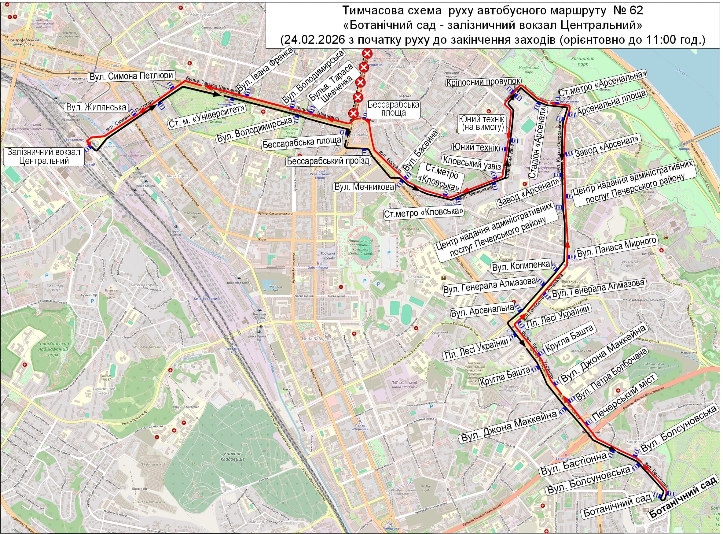 У розкладі руху наземного пасажирського транспорту в Києві 24 лютого також відбулися зміни: