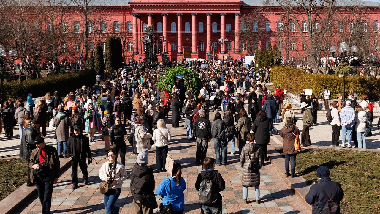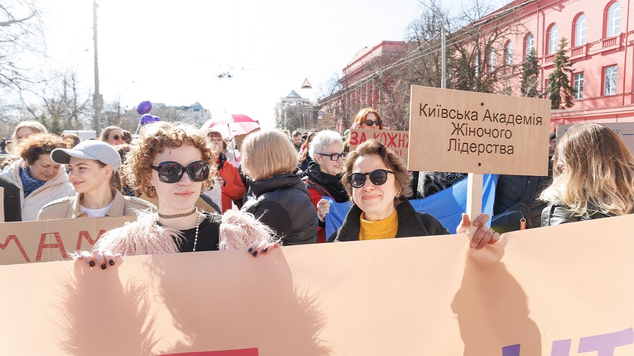 У центрі Києва відбувся Марш жінок – учасники зібралися, щоб привернути увагу до тем безпеки, рівності, гідності та захисту прав жінок в умовах повномасштабної війни.