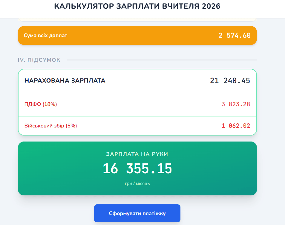 Калькулятор зарплати вчителям: як порахувати свою зарплату у 2026 році