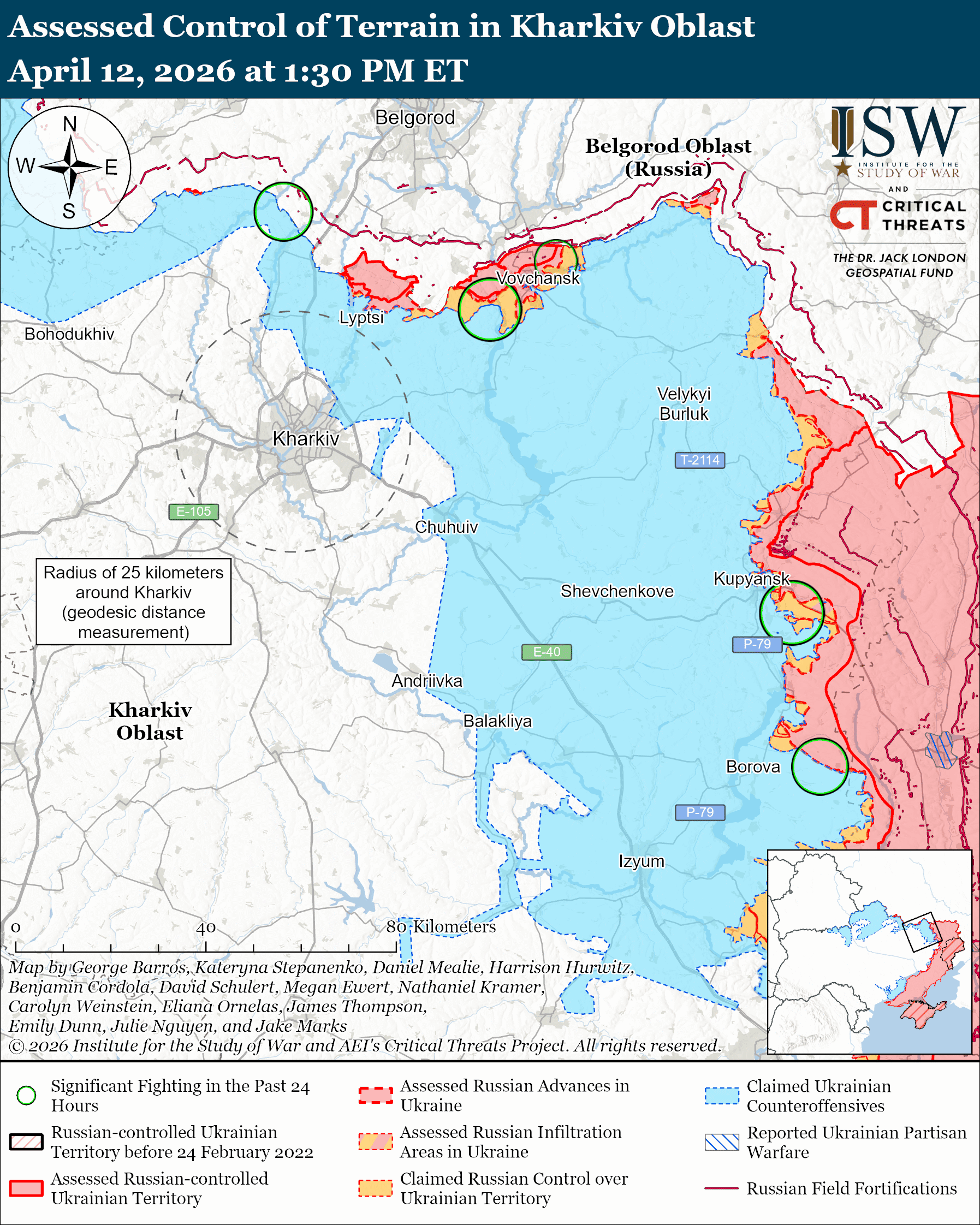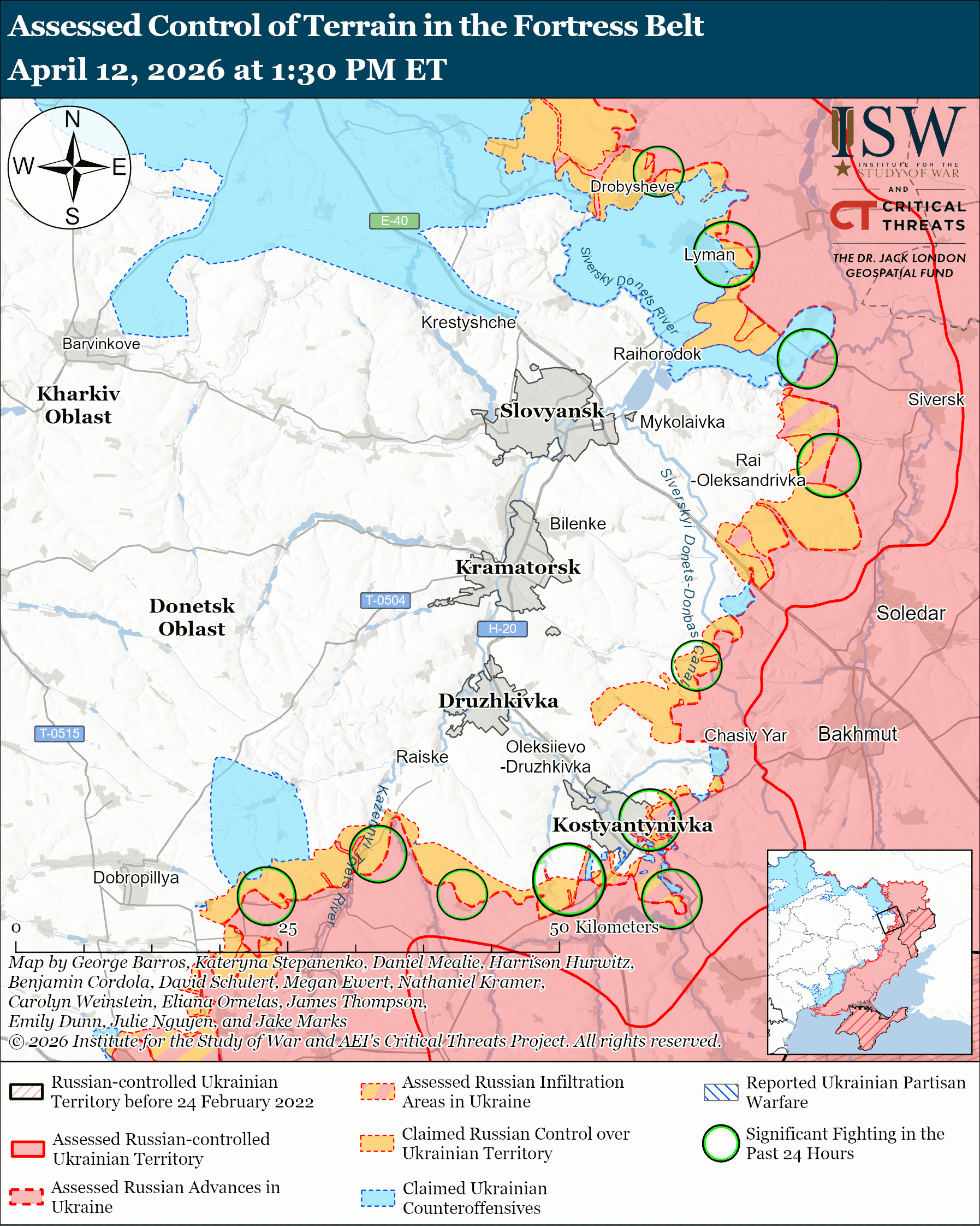 Карта бойових дій в Україні на 13 квітня 2026