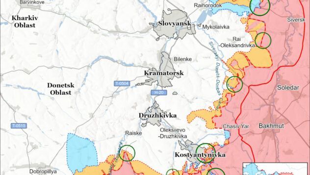 На Костянтинівському напрямку ворог здійснив 22 атаки в районах населених пунктів Костянтинівка, Олександро-Шультине, Плещіївка, Іллінівка, Русин Яр, Степанівка, Софіївка, Новопавлівка.