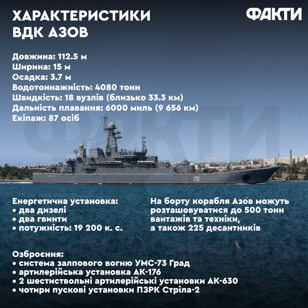 Що відомо про десантний корабель Азов, які його особливості та технічні характеристики — в матеріалі Фактів ICTV.