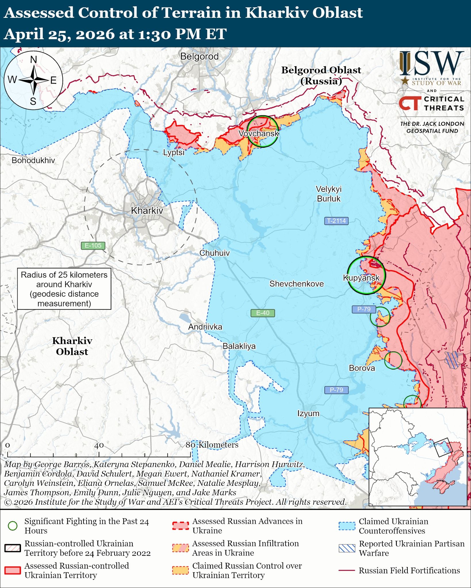 На Куп’янському напрямку агресор вісім разів атакував у районах населених пунктів Петропавлівка, Радьківка, Новоосинове, Куп’янськ та Кучерівка.