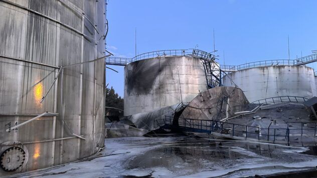 Під час пожежі зруйновано резервуар із соняшниковою олією об’ємом 6 тис. тонн. Частина продукції витекла в акваторію порту.