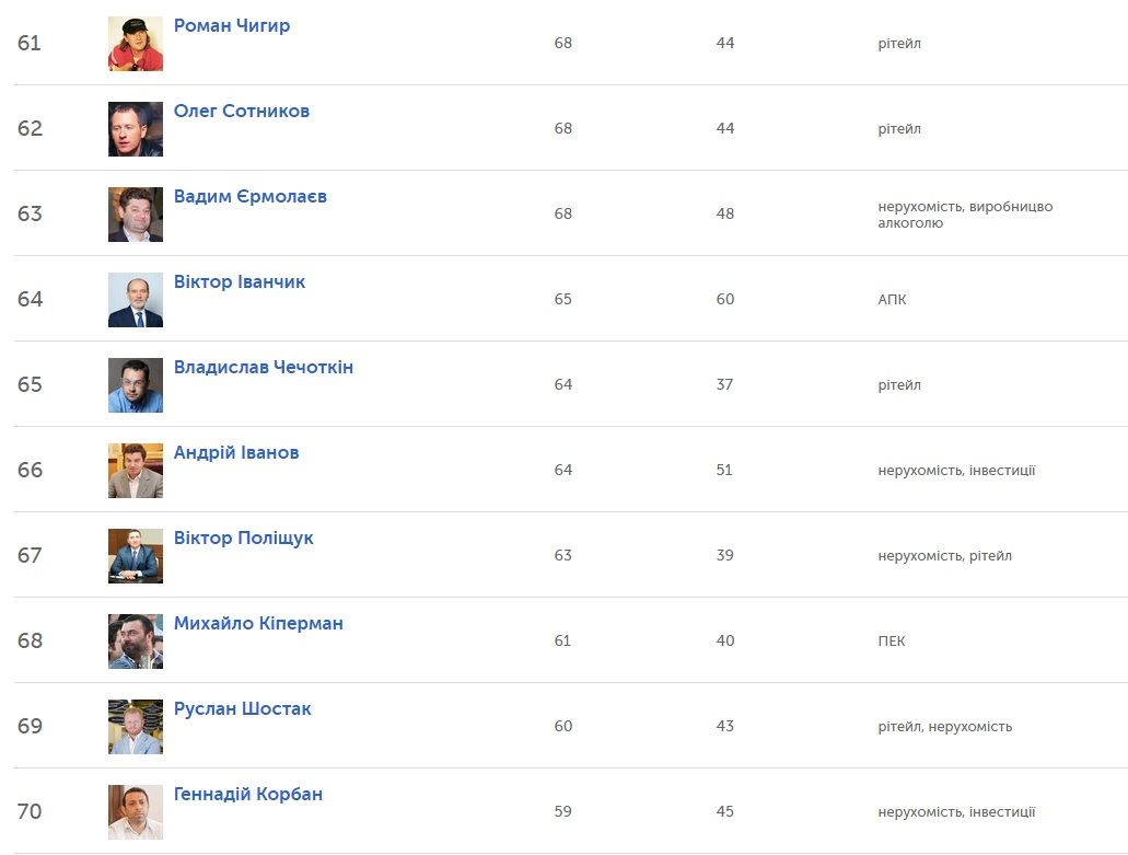 Окрім цього, у трійці лідерів опинились Ігор Коломойський ($1,3 млрд) та Геннадій Боголюбов ($1,3 млрд).
