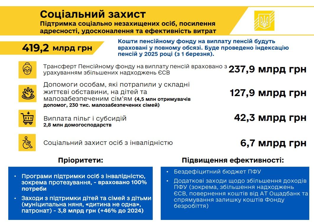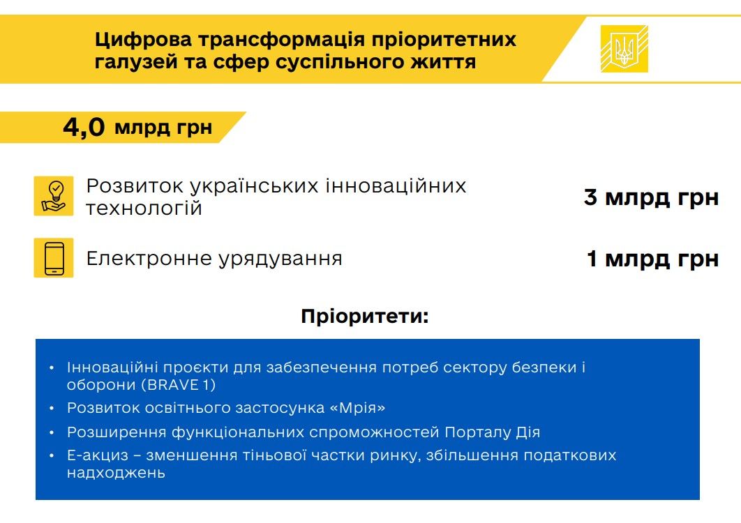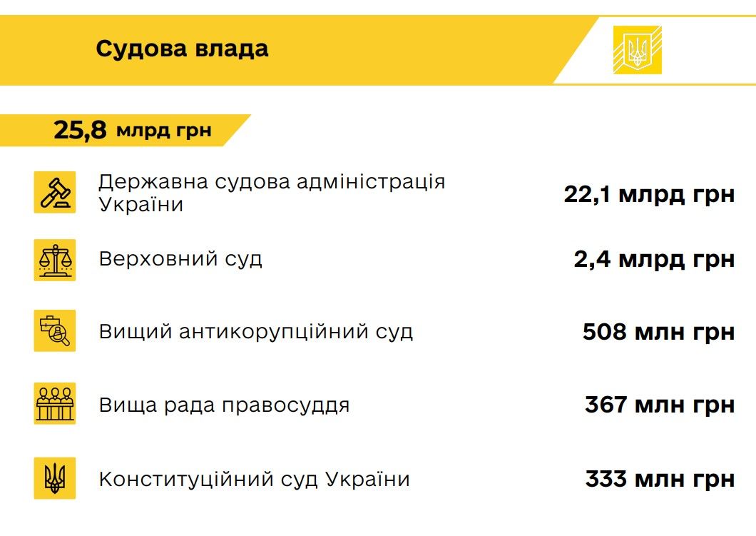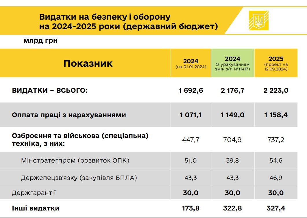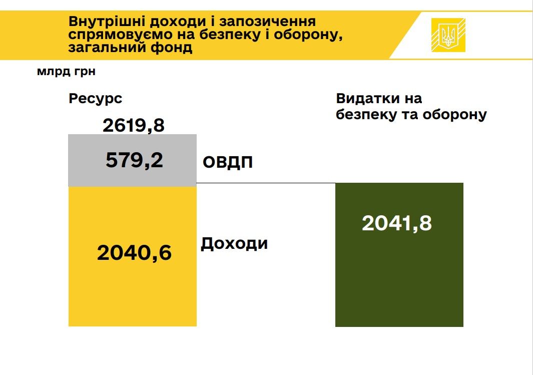 На ці видатки передбачено грошове, речове та продовольче забезпечення військових, придбання озброєння, техніки та підтримку оборонно-промислового комплексу України.