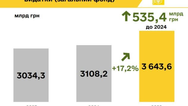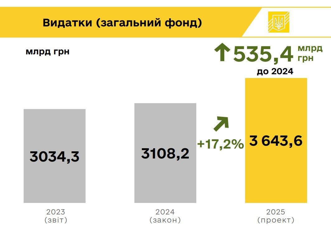 Водночас видатки загального фонду державного бюджету становлять 3643,6 млрд грн.