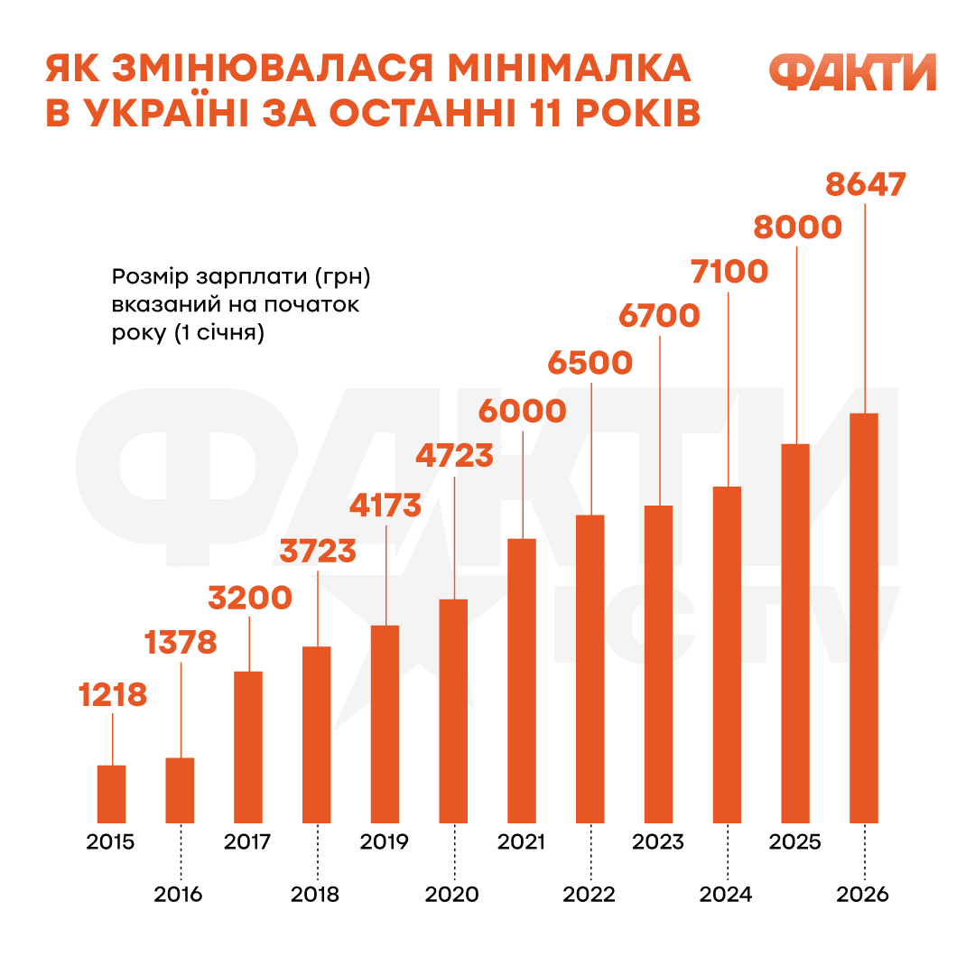 Відповідно до бюджету на наступний рік, мінімальна зарплата у 2026 році становитиме 8 647 грн.