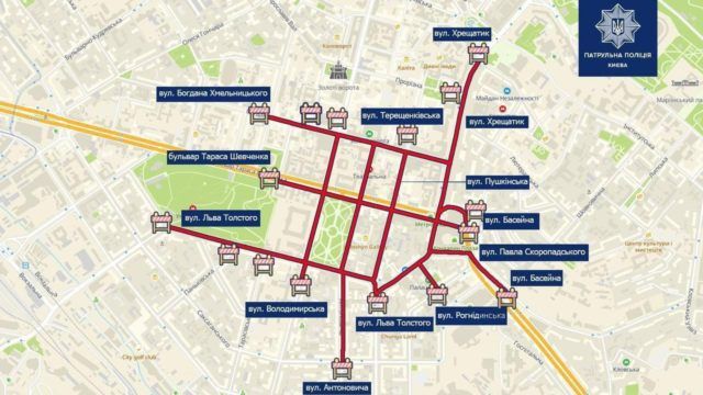 Через Марш рівності та інші заходи в столиці було перекрито рух автотранспорту на наступних вулицях: Володимирська — бульвар Тараса Шевченка — Терещенківська — Льва Толстого — площа Льва Толстого.