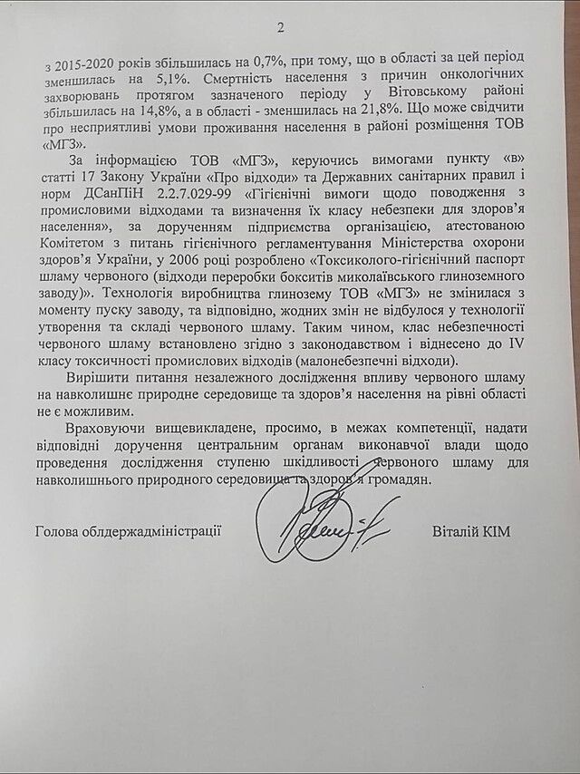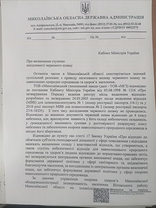 Як відомо, голова Миколаївської обласної державної адміністрації Віталій Кім попросив Кабінет Міністрів України перевірити, наскільки насправді шкідливі відходи червоного шламу, які залишаються від виробництва бокситів на Миколаївському глиноземному заводі.