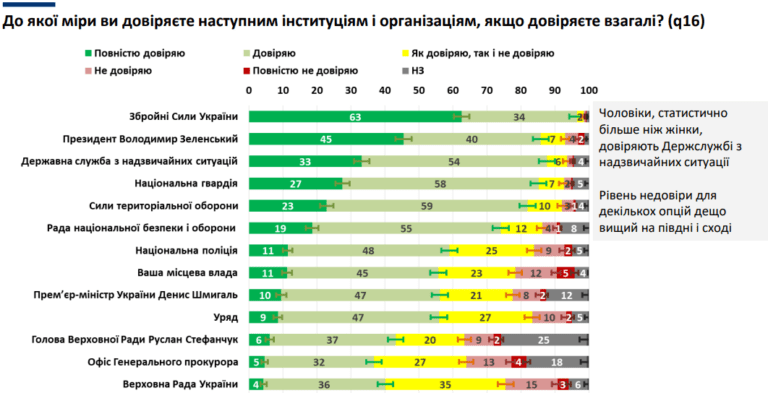 Довіра до ЗСУ – 97%: яким держустановам та організаціям найбільше довіряють українці