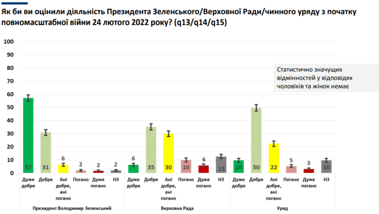 Рівень довіри відображається в позитивній оцінці діяльності органів влади з початку повномасштабної війни 24 лютого.