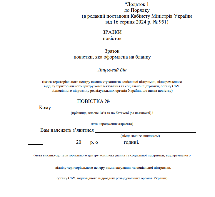 Постанова №951 внесла суттєві зміни до процедури оформлення та направлення повісток. Відтепер передбачено два способи формування повістки:
