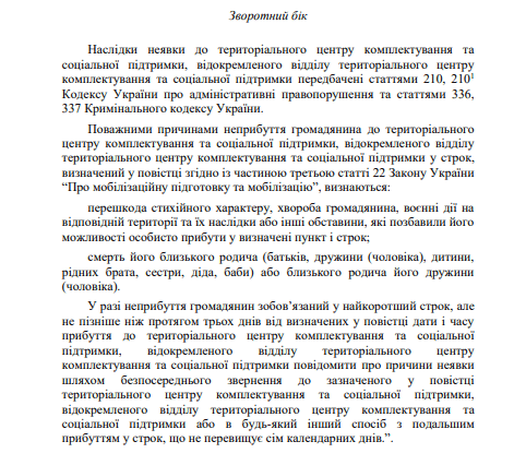 У ньому має бути зазначено про зобов’язання з’явитися у визначений призовний пункт протягом певного часу.