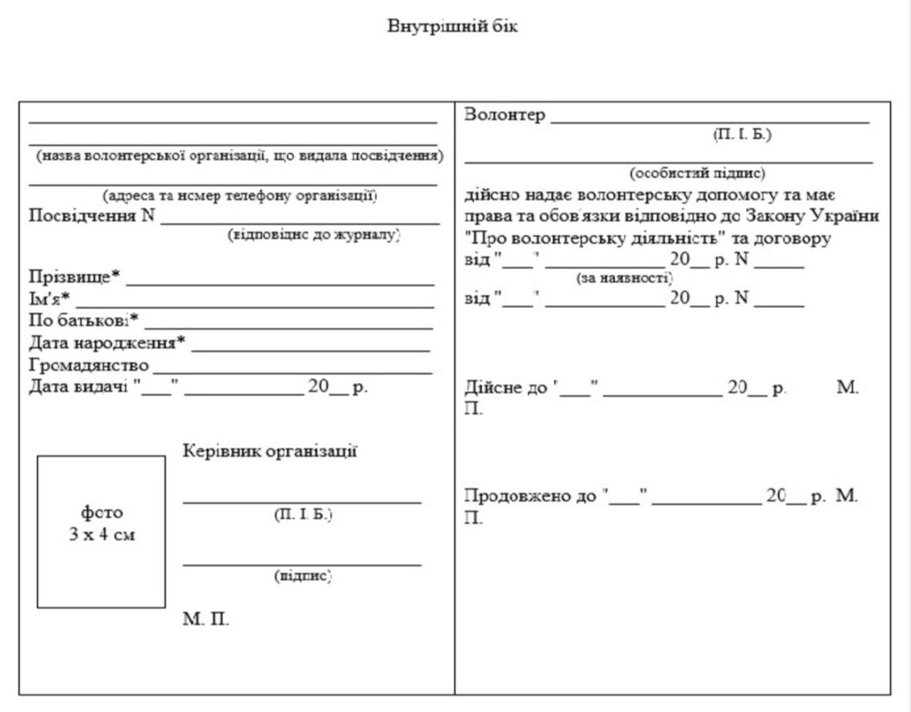 Зразок посвідчення волонтера може виглядати наступним чином: